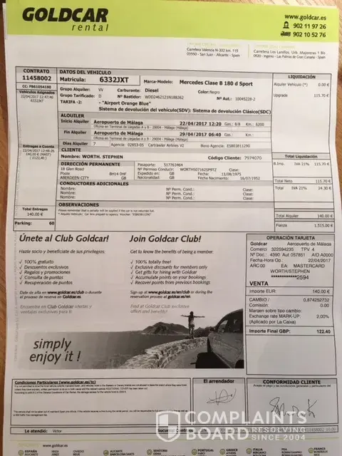I'm claiming the money that Goldcar stole from me 462.50€. I’ve been told by their Customer Service that they are not going to refund it.