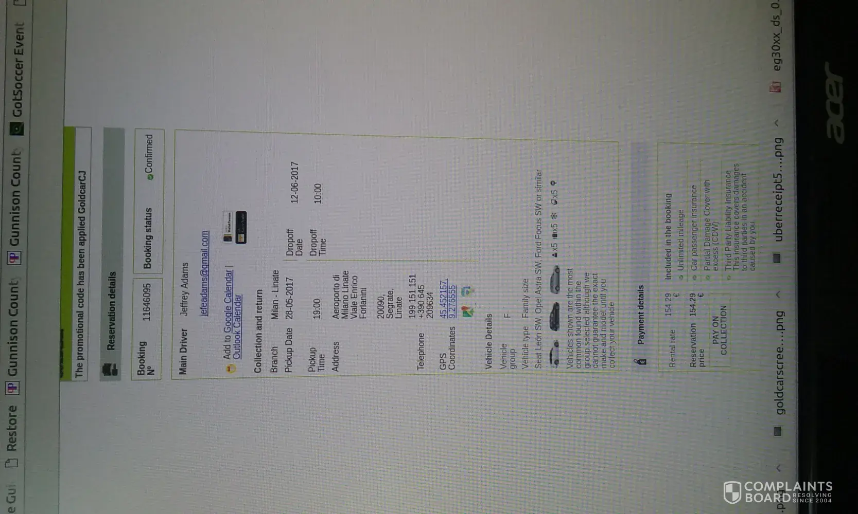 On the 22nd May we received an email from [protected]@goldcar.com