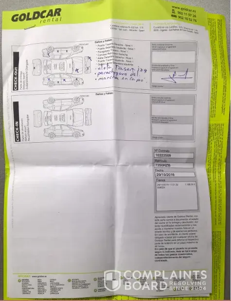 avoid goldcar spain - fabricated damage after car return is their common practice