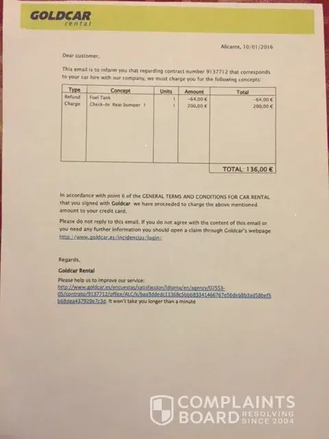 This was as good as it got though - I eventually took the refund and went away fuming. I have dealt with many car hire companies but will never deal with goldcar again - don't go near them.