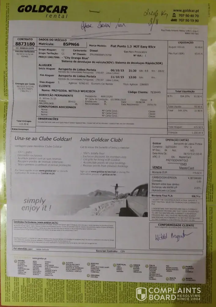 I have filed a complaint at both the European Customer Centre which fully agrees with me. After confronting Goldcar with this, they don't reply my emails anymore.