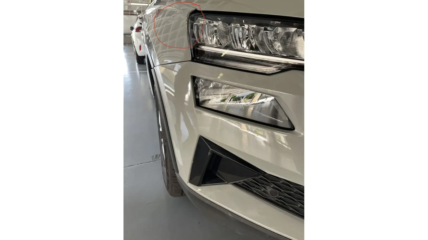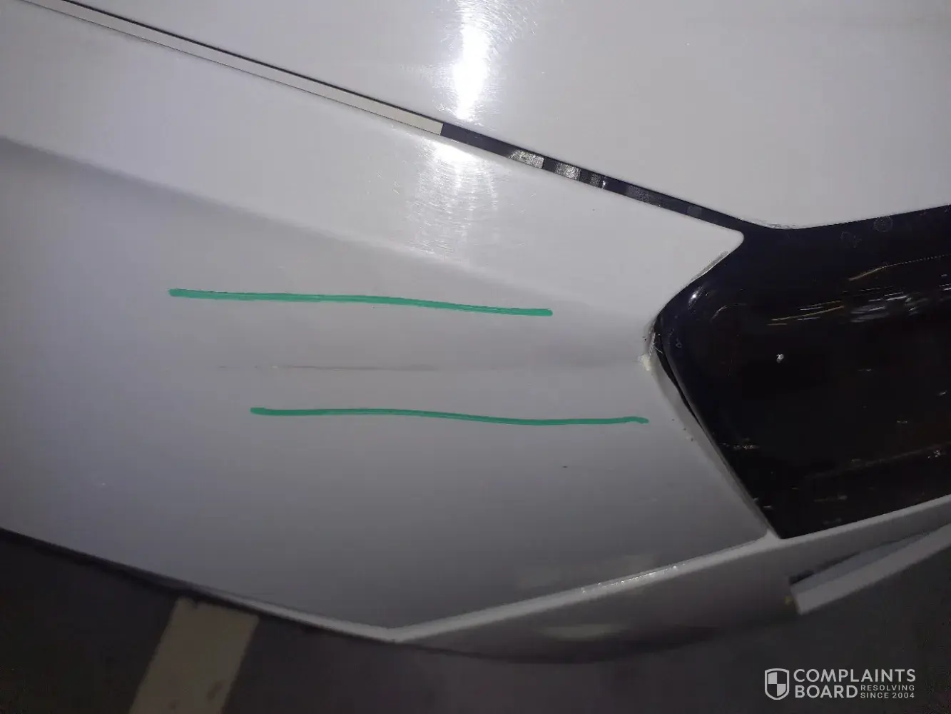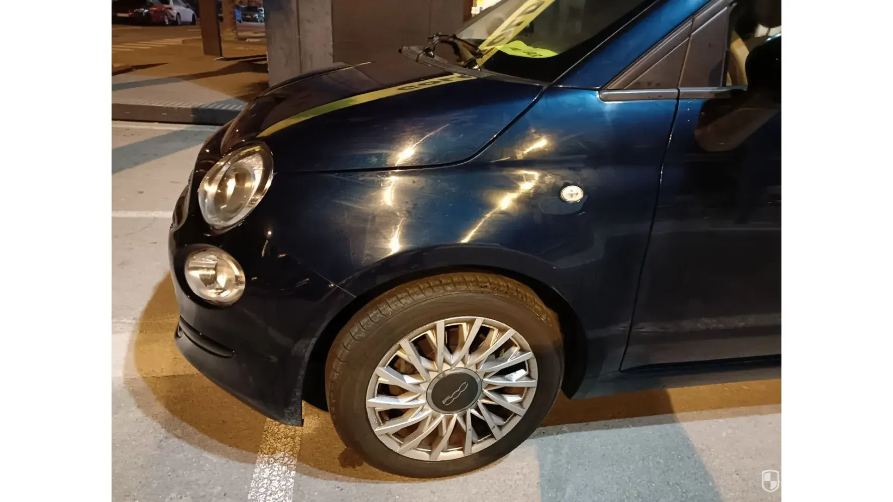 I am also attaching photo (time stamped 27/04/23 at 16.26 geolocated at the airport parking at Malaga) of the car in the condition before starting the rental contract, where you can clearly see the same damage on the edge of headlamp and dent that your report is insisting was caused during our rental contract.