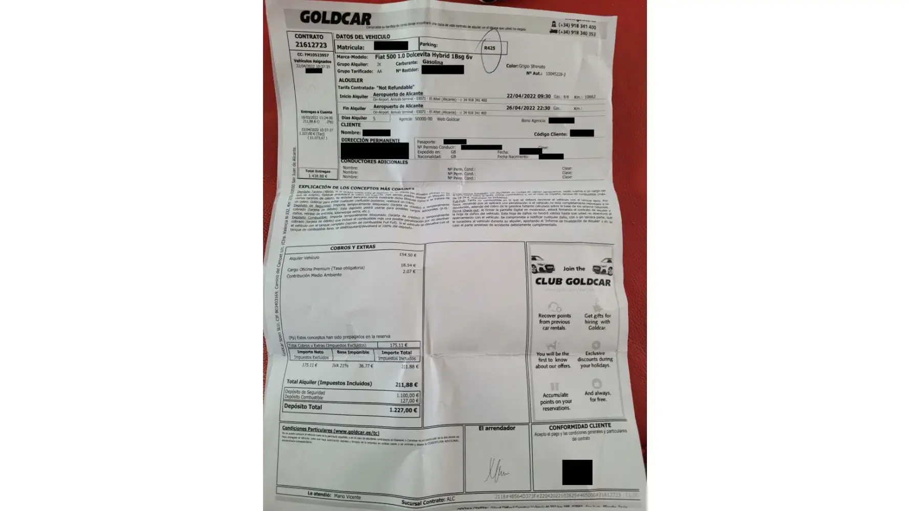 I then made an official complaint to Avant, my credit card supplier and they opened a dispute. However, Goldcar rejected the chargeback quoting that I had signed the rental agreement!