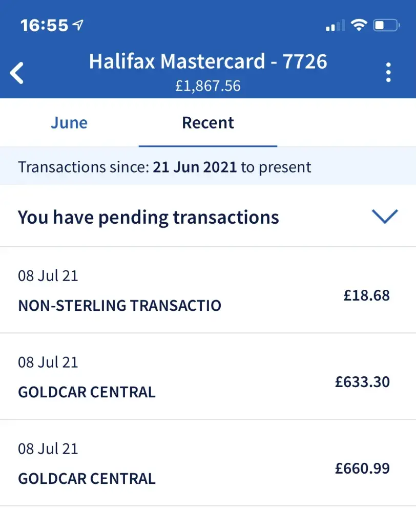 I made a reservation online on 8th July. The first attempt failed, as the Goldcar website informed me. So I completed the reservation again, this time was successful. One booking showed in my Goldcar account under reference [protected] . However, a few days later I now have 2 transactions completed on my credit card.