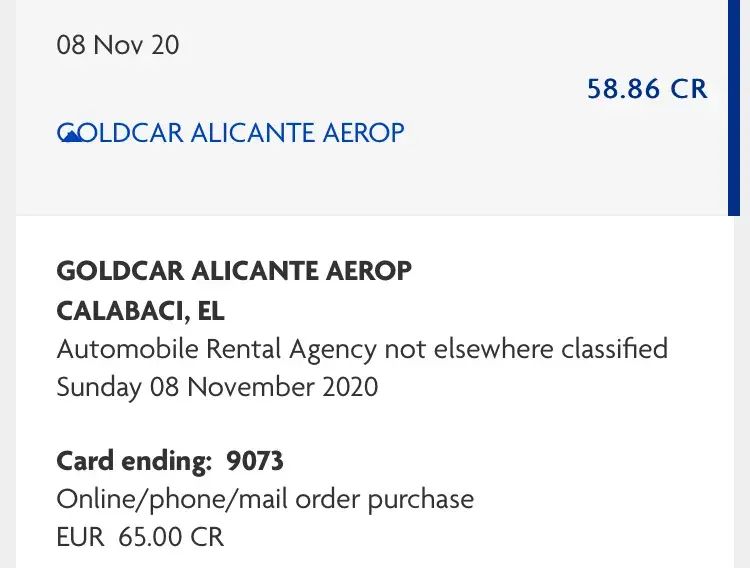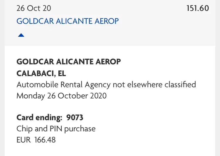 I paid Goldcar £39.95 on 5th April 2020 to rent a car from Ibiza.