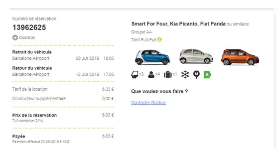 Goldcar rental contract no. [protected] - Codigo cliente 4715694