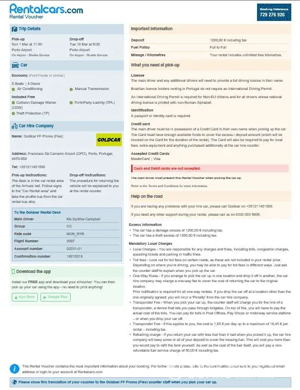 I expect someone to help and to inform all potential buyers of Ryan rent a car and Goldcar rental services.