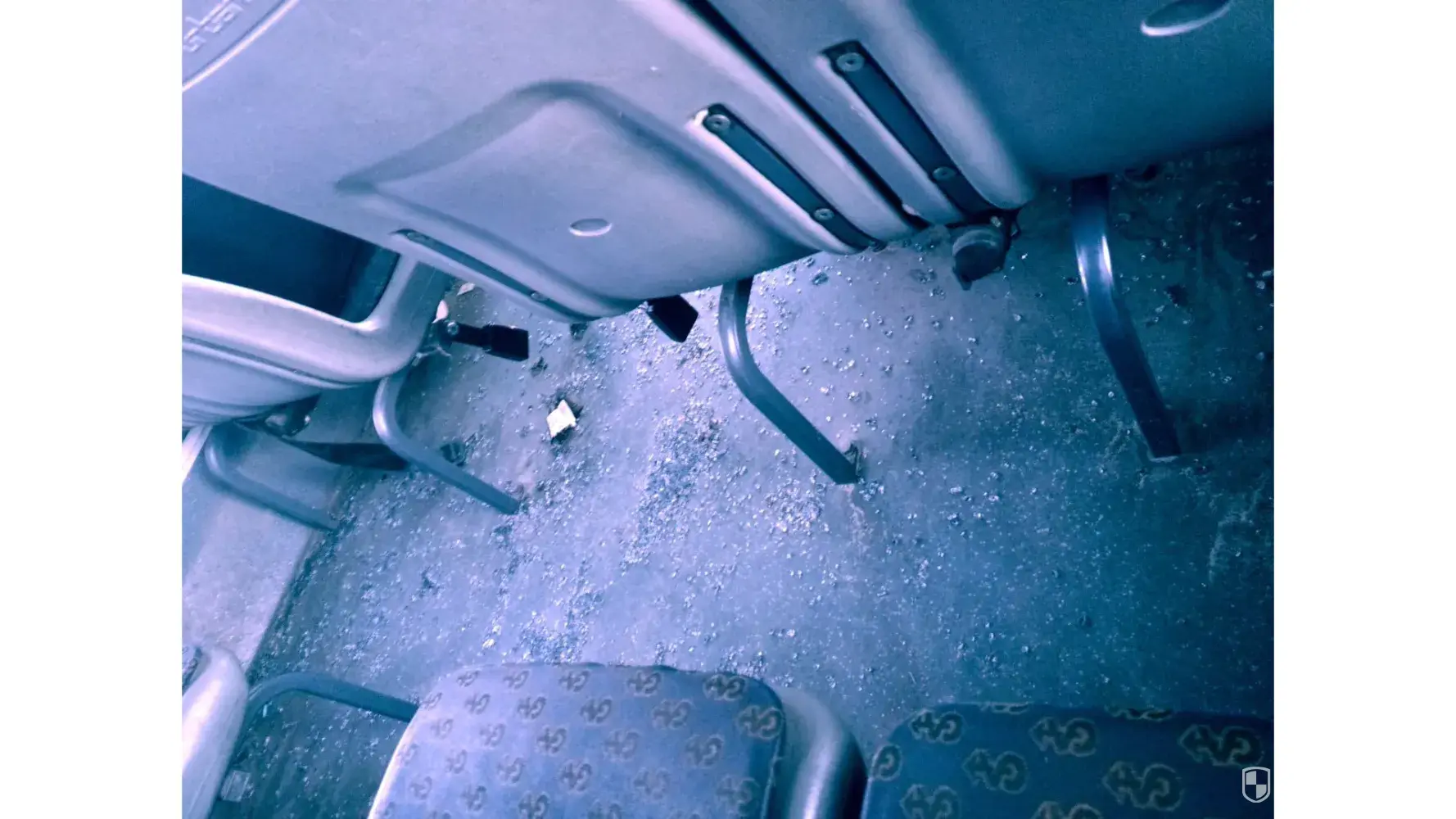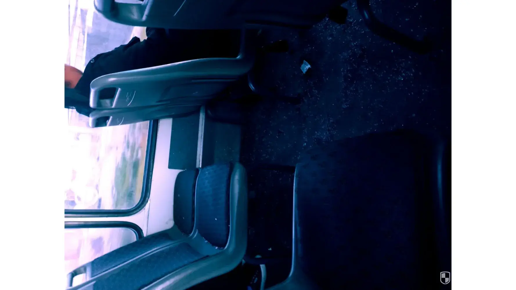 I am in this bus currently and it has not been cleaned. The floor and seats are full of broken glass. It looks as if there was a huge fight in this bus.