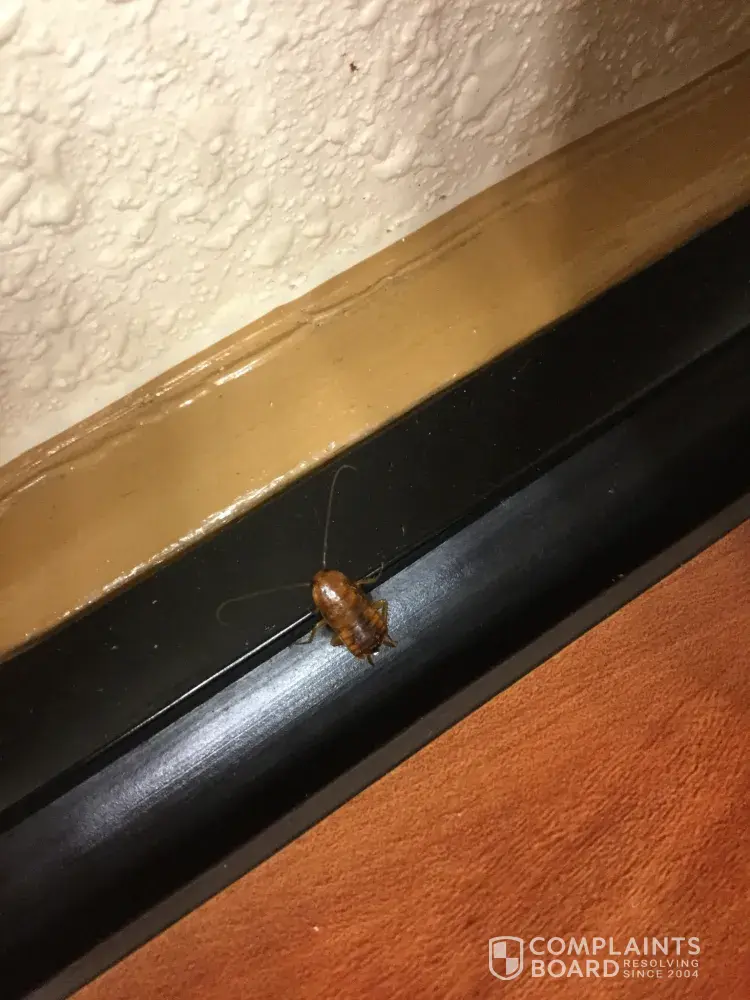 But this picture here I'm posting, is what I found next to me, on the wall. I took a picture of this roach, because corporate and others need to know about it. I showed the roach to a food server passing by and she got rid of it. We did not blame the wait staff and still left a tip for their service. It's not their fault.