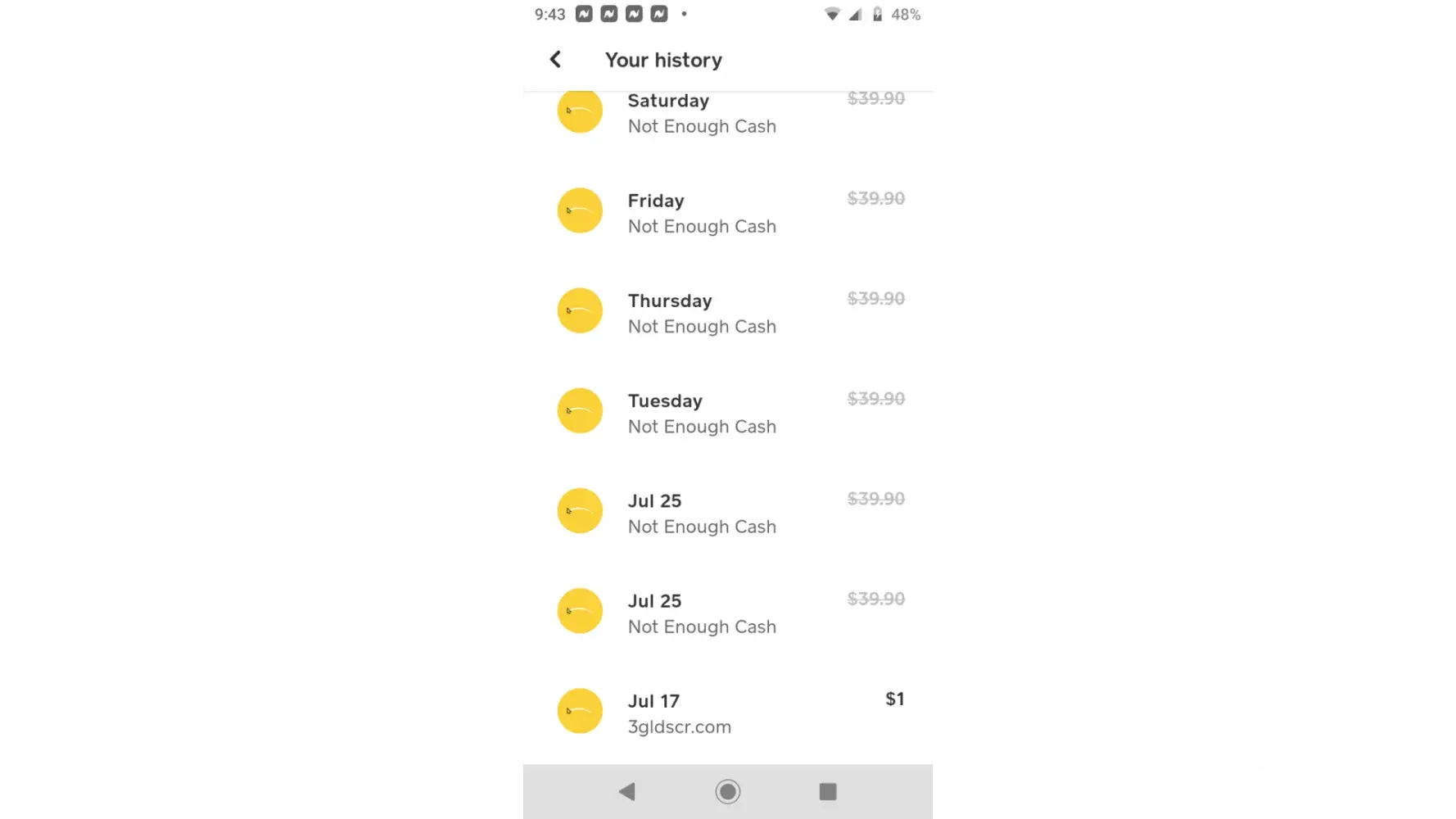 I paid a dollar and canceled it but they took $120 from the cash app. I do not have 3 days to wait HELL NAW