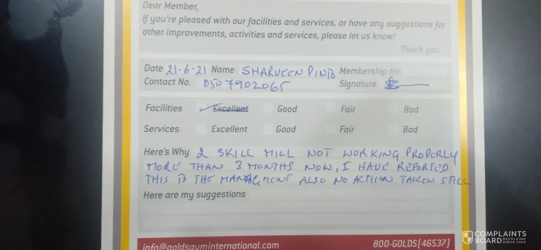Worst experience with gold gym. They are cheating the customers. I got 6 months membership and i introduce my 4 friends also. We paid the full fees. But after 3 months they suddenly closed without any notice. One of my friend just newly joined and he just use 2 days his membership. Now all our money waste. No customer care is attending our calls. whenever i called no one is attending the call. Why this international brand cheating us. My experience with fitness first was great. I regret why I choice Gold Gym. My worst decision. Return our money. Avtar [protected]