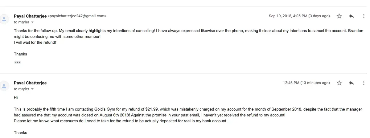 To the contrary, my account was still charged for a $21.99 for the month of September 2018. I have called multiple time and exchanged emails with the manager when each time I was given a time of 4-5 working days for the money to be refunded into my account! To date - as on September 22nd, 2018, my money hasn't been refunded! I am really frustrated with the fake promises made by the sweet representatives, the manager, and the general manager of the site but I do not know how much of a rocket science or brain surgery does one need to know to issue a simple refund! I will never ever speak well of this organization and convey my message likewise to every possible person I know! Please help!