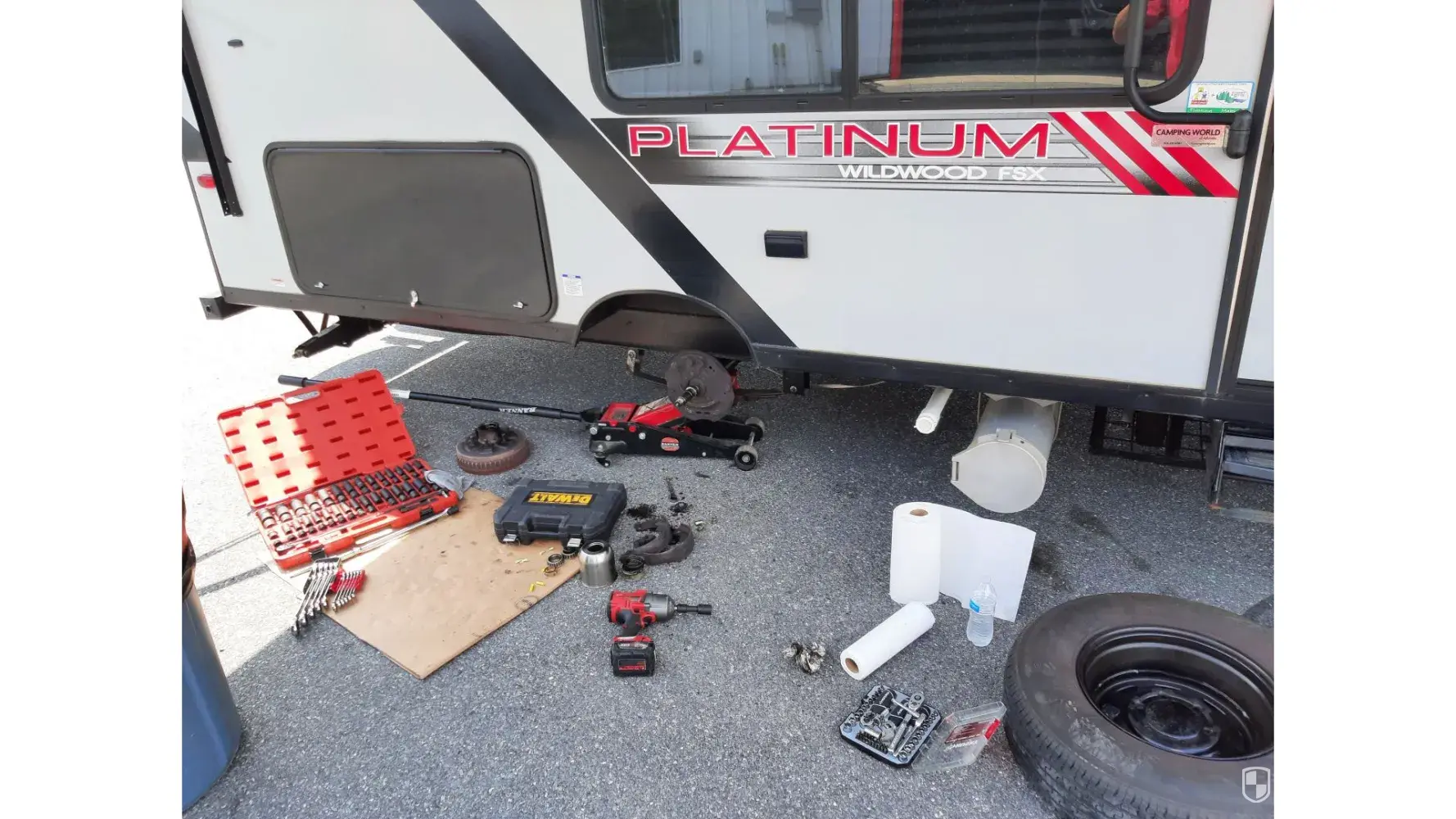 I was relieved that I still had a 5-year service warranty and thought well, at least it will be covered. I've only had this camper 2 years. Nope. Even though I spent over $6500 above the purchase price of my camper in extended warranties from the slippery camping world salesman, none of this repair will be covered. And to add insult to injury, when I got on the wildwood 179dbkx facebook page, I find a host of other owners who have had the same issue, in the same timeframe, with the same passenger side brake assembly. They are denying me coverage because I didn't take it in for them to inspect this year. Yet, do you know how much stuff I had to fix myself because they didn't actually inspect it before the sale?