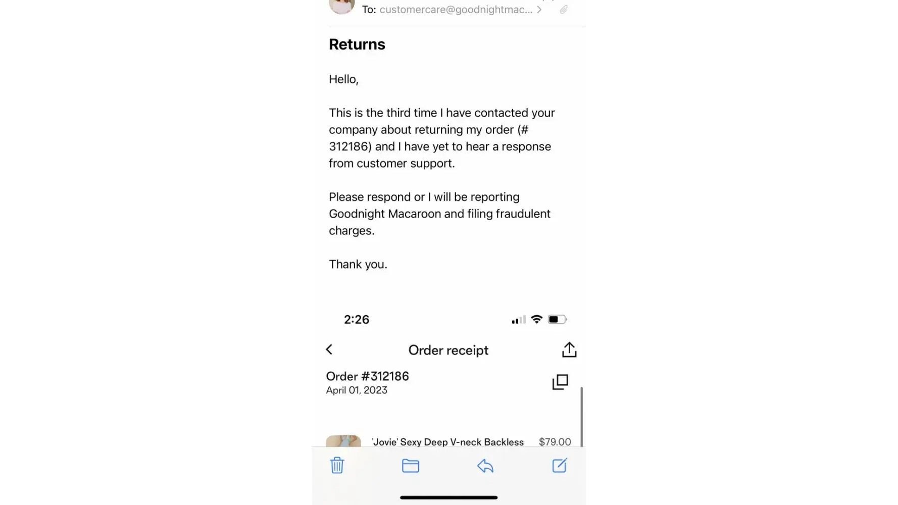 Goodnight Macaroon ARE SCAMMERS. I placed an order in April 2023, when it arrived the quality was TERRIBLE and it was missing some items from my order. I started a refund in May and followed all of their instructions, including paying for the shipping and sent them a copy of the receipt with tracking number. They replied saying they’d process the return and it would take 3-7 business days for the refund. I’ve never received a refund and they have ignored all emails since. They took back the merchandise, after not shipping the full order to begin with, and NEVER processed the refund. They stole $250.60 from me plus the $17.38 I spent to ship it back to them. DO NOT BUY FROM THIS COMPANY!