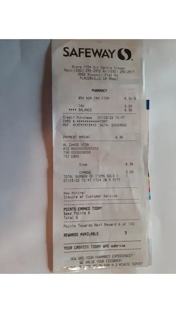 On 7/3/2022 @ 10:47 am I picked up my prescription of Amoxicillin from Safeway Pharmacy in Placerville, CA (store 1724). The amount came to $6.36. I stated to the pharmacy clerk Sabrina that the Good RX price was $5.32. She said she didn't know why the price was different because she put in all the same codes that was on the coupon. She said "it's probably tax". This young woman needs to either go back to school or stay in school because a) CA tax is high but it wouldn't be a $1.04; and b) this drug isn't taxable. I asked her if she could overide it. She says I don't know. I didn't want to push the issue because the line to the pharmacy was long. But, I keep thinking about the overcharge. I know it's just a $1 and change but that money could have been used toward something else. Living on a fixed income is a real challenge these days!