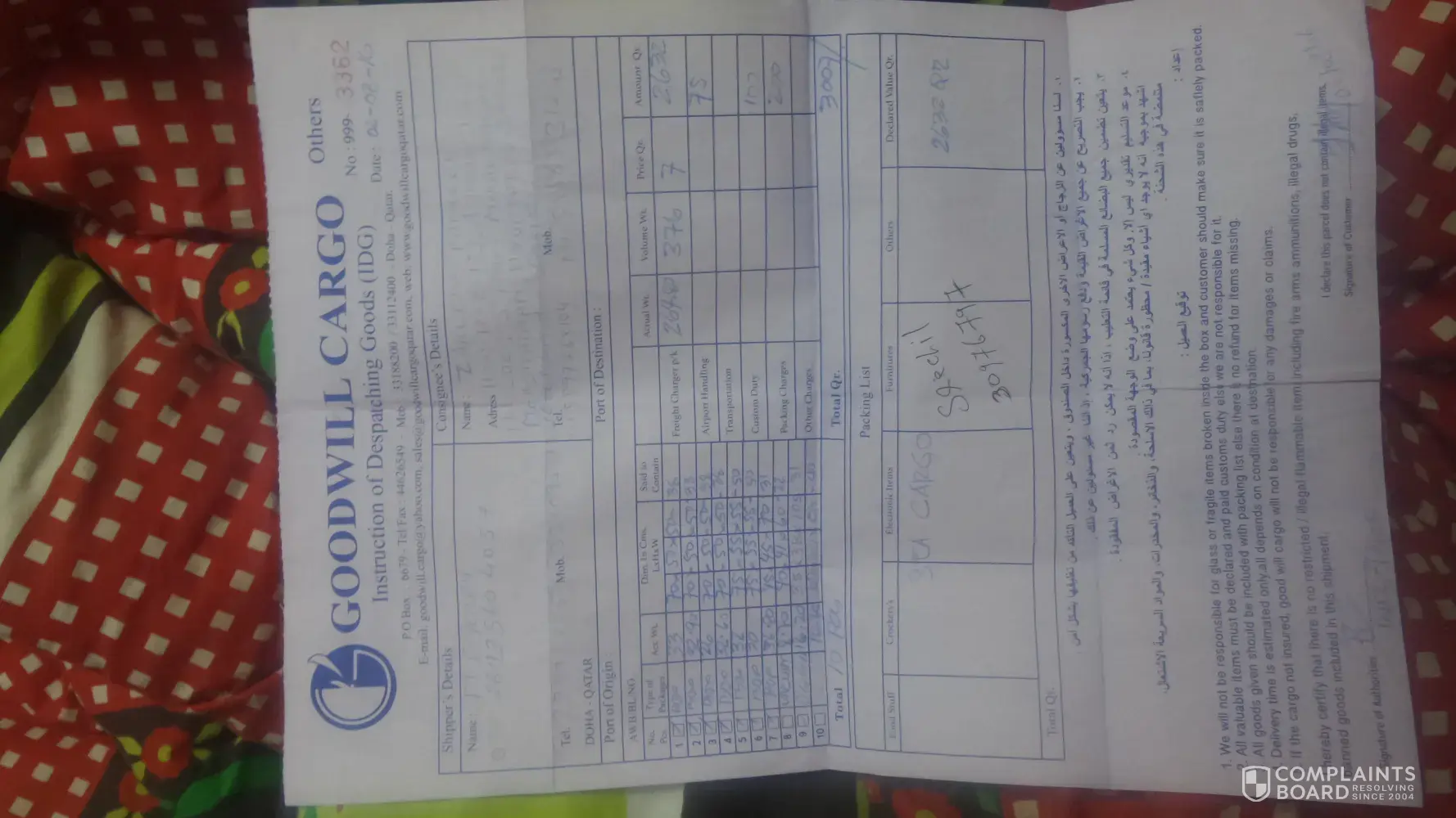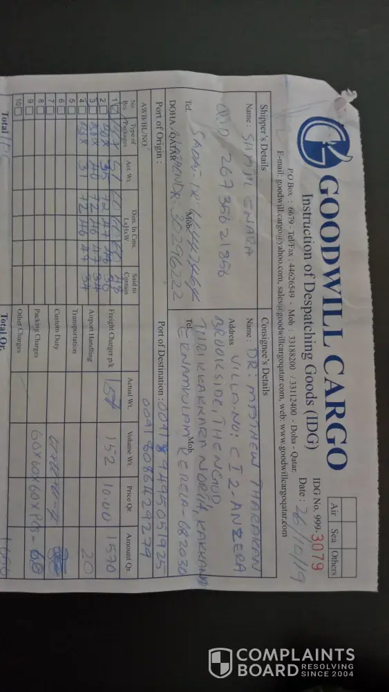 10 Goodwill Cargo Qatar Complaints