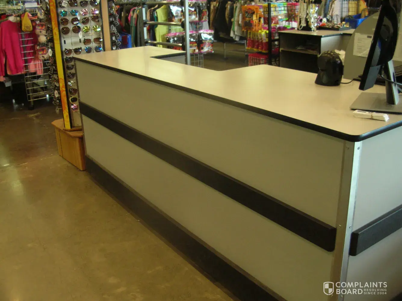 I am probably banned from my favorite shopping store because I pointed out something that should have been common sense in any customer service transaction. I have included a few photos of the trip hazards that were in the store at that time and a photo of the counter area where the folding chair was leaned up against(after she put it back and told me leave). The register was closed and there was more than enough room to have this item sit for ten minutes. There are many disabled people who shop in these stores and struggle with large items in the carts. Most rows are not wide enough for two carts to pass.