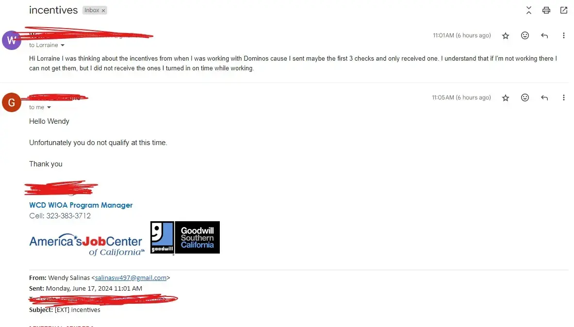 I have not received my first or second month incentive checks. I sent images of my checks to my case manager, who has since left the company, along with a request for about $40 in gas reimbursement. This was for a trip to Los Angeles to meet with my former case manager, who told me to submit a gas receipt when i get gas on the way back for reimbursement a...