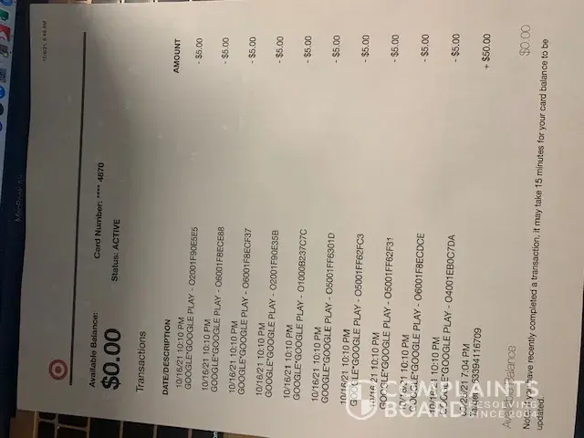 I want the money they took from my account without my knowledge or consent till I checked my banking transactions and saw what they were doing they keep giving me the run around I just want my card and the funds they stole out of my account and my card off Google play/pay cause I will never need them again