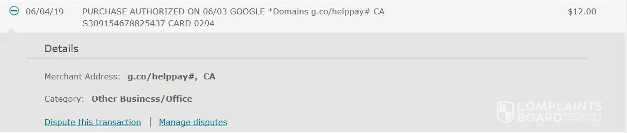 10-May-19 Transfer Debit VISA POS TXN AT US/GOOGLE *SERVICES g.co/help 1.02