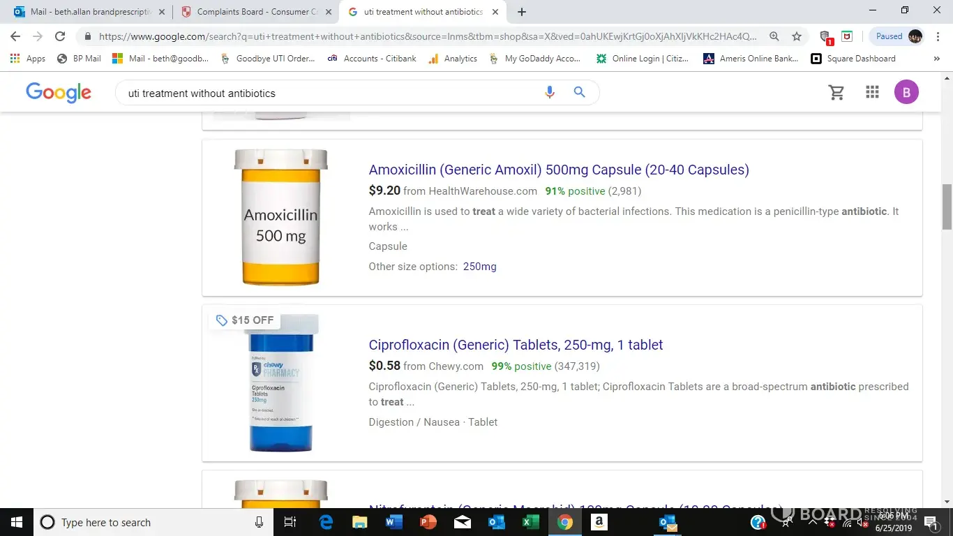 It is illegal to sell antibiotics directly to consumers without a prescription, yet Google is showing sponsored antibiotics products in the "Shopping" tab when I search on "UTI treatment". See photo below.