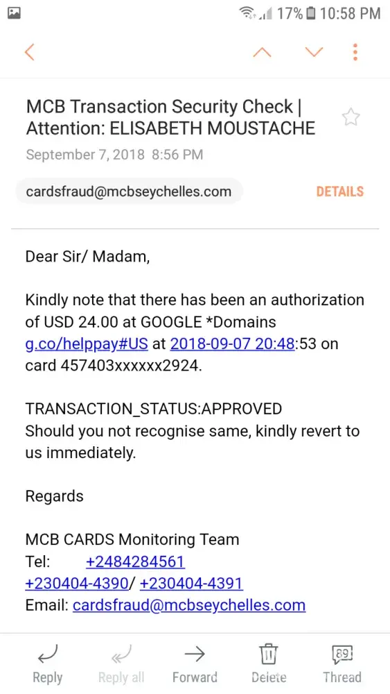 USD 32.46 at GOOGLE *Domains         g.co/helppay#US at [protected]:46:29 on card 457403xxxxxx2924.