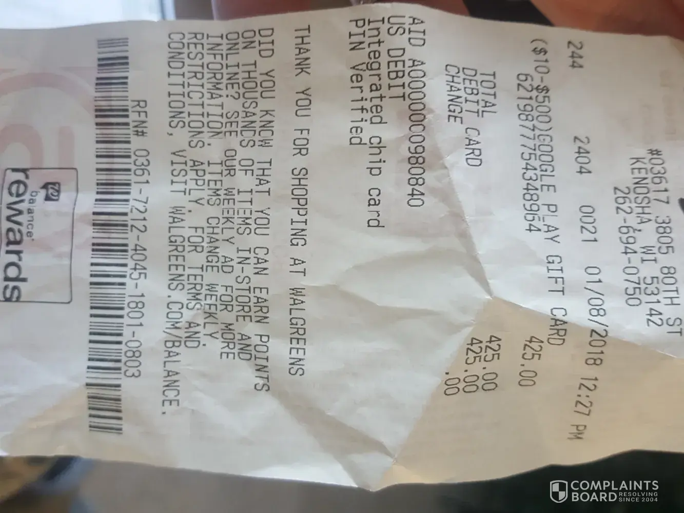 My Father received a call yesterday from a loan company that said they were affiliated with Google Play. They offered my Father a 5, 000.00 loan at a 3% interest rate and said that they are able to do the low rate due to Google being such a big company. They explained the loan process and told my dad that all he needed to do was pay for insurance, provide banking information, ss# and taxes on the 5, 000.00. Total cost was over 600.00 when all was said and done. They also offered an additional discount if paid through Google Play and reminded him of how convenient it would be for him to pay with the cards for his monthly payments of 91.00. They sent my father to the store to put the money on the cards and asked my dad when a good time to call back would be. Dad followed direction and emptied the cards over the phone. We are devastated. My father was looking up loans to help pay for my mother's medications and now cannot even pay their bills. My father then went to the bank immediately to protect his account, change debit cards and then spent the evening on the phone cancelling his auto bill payment accounts. Today, 1/9/17 at approximately 12:10 pm we received another call from the same company asking for more money. I asked my father to stall them so I could reach out for help. All I could think of was to have him go along with "acting as tho" he would need time to get more money and they agreed to call back in an hour. They have not called back yet, but they will want to get more money. We called the Kenosha police department and an officer came by for him to fill out a case report but was informed there was not much they could do. We desperately need your help. My Father has no money left and my mother is out of medication. Could you please contact us and help us.
