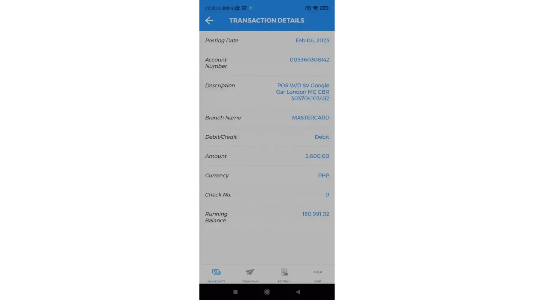Good morning, there was unauthorized charges in my account last feb. 06, 2023 and I did not purchase anything online or transaction on that given date the Unauthorized number which deducted twice the amount of 2600 is POS W/D SV GOOGLE GAR LONDON MC GBR. I want a refund with a total amount of 5200 since it was deducted twice the amount of 2600.. Please see details the attachment below..