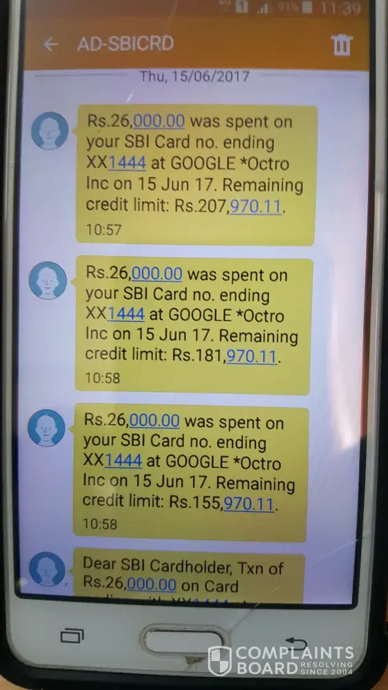 Rs. 26000+26000+26000+26000+5000 to google * octro +50 to google * serviced total of 109050 has been done online from The Usa pwhich is been communicated from a representative Tanya who called me after the card was blocked. As checked it was done on Google Ocro and no otp or any card number was shared from my end. As checked there are number of complaints online for the same site for the same amts.