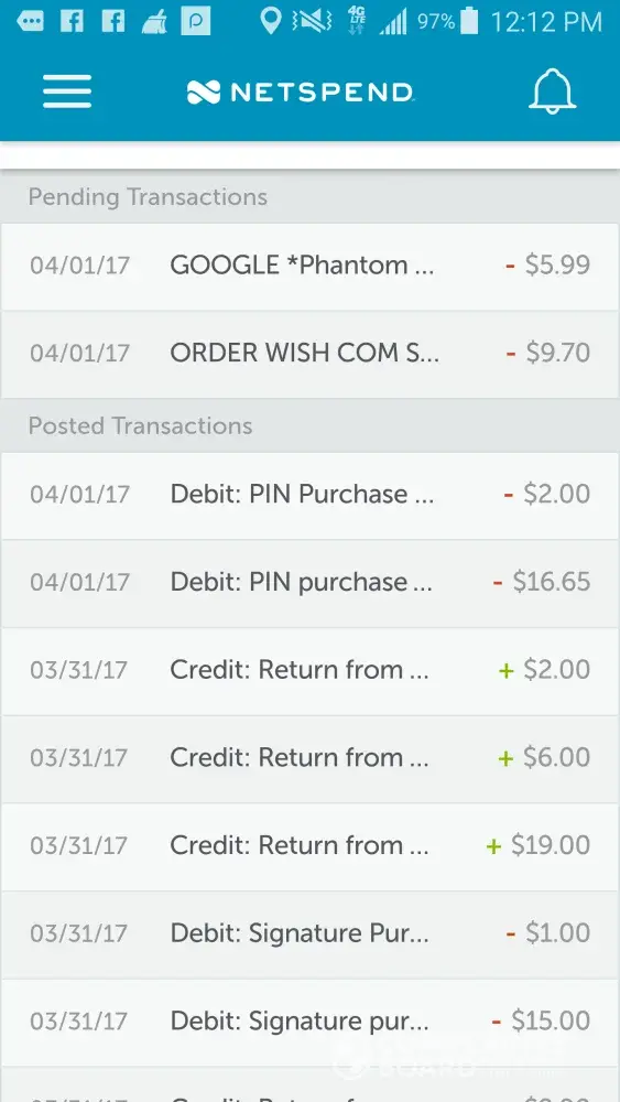 Dates: 3/20/2017 $.99, $1.99, $1.99, $ .99, $ .99