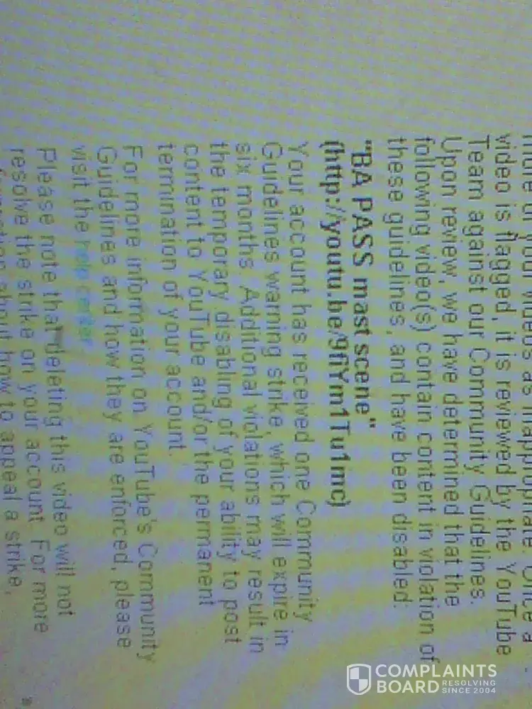 I received a strike on my youtube account on November 8th, 2014 regarding one of my videos titled " BA Pass mast scene" which contained a non explicit Bollywood movie BA Pass sex scene, permitted and far less vulgar by the standards of other such youtube videos. But I still deleted this Video and requested youtube admin via feedback to remove the strike and restore my account to Good standing again, as I need to upload some videos which exceed 15 minutes length, a feature which is currently blocked in my account due to bad standing. But these people have a policy of the strike expiring in 6 months and I find it very annoying to wait for 6 long months to get my account in good standing, so that I can continue my work. Despite several attempts by me to request them to restore my account to Good standing, they have not even responded to my feedbacks, leave alone taking favourable action on my requests so far. Please take strict action against Youtube and get my account restored to Good standing. Now I do not have any nude or objectionable Video content in my Channel, please visit https://www.youtube.com/channel/UCNiWh-dqBH7IKxBJ4s2IJUA to verify my claim. And the youtube is partial also, other users have uploaded full BA Pass movie and they are not being flagged down, visit https://www.youtube.com/watch?v=r51mlHAcEIY, https://www.youtube.com/watch?v=ZFC78XMGBC0, https://www.youtube.com/watch?v=ZT2ir5HzdRk, https://www.youtube.com/watch?v=3f9V3Ym-Oqo and many more links like these. So the question arises that are the rules only meant for me ?! Please take strict and immediate action against Youtube and get my account restored to Good standing asap.Please find the proof photos in attachment.