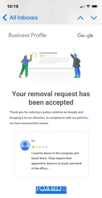 Each time I receive an email from Google about a review, it talks about "creating trust amongst the community" with a reply. The experience I had with Google reviews proves otherwise for your company.