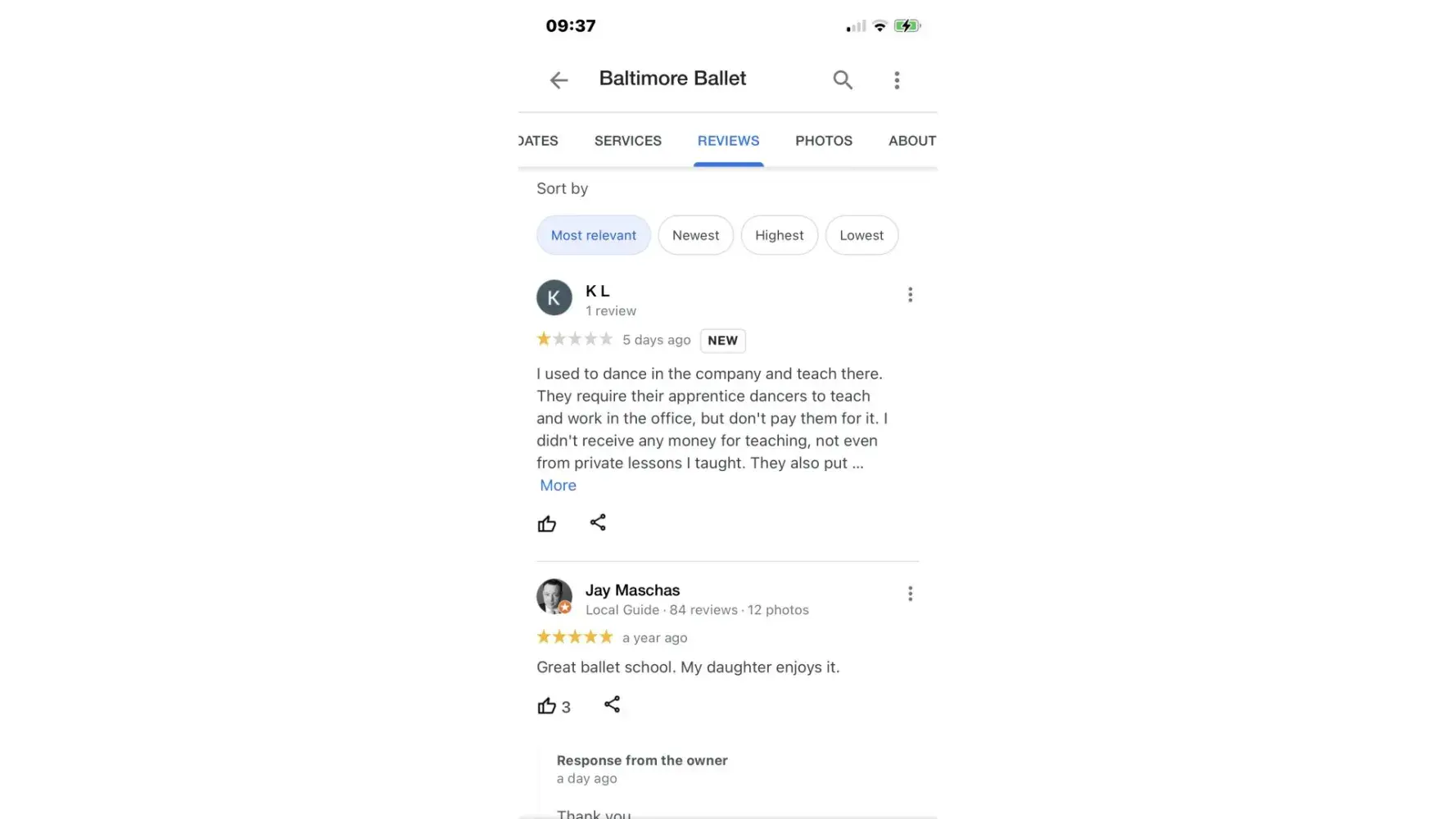 My students, parents, dancers and I have photographs proving that Google may have been blocking close to all positive reviews while generating/allowing negative reviews from unbeknownst accounts for Baltimore Ballet School and Company. We also have proof that Yelp has been practicing similar strategies as well.