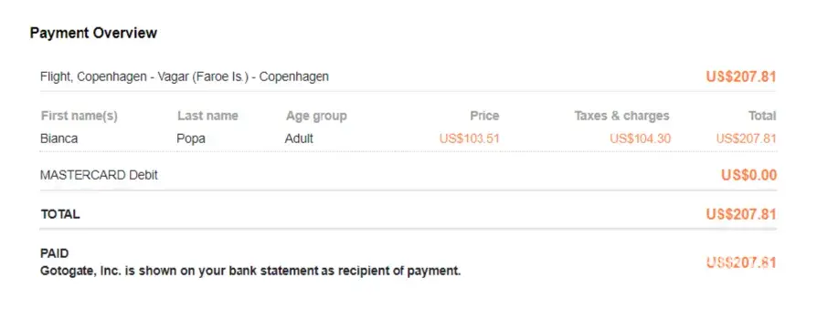 Desired outcome: Refund on flight booked through Gotogate