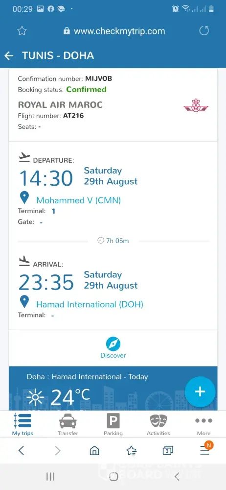 My trip from Doha to Tunis TUNIS TO DOHA Marocan airlines