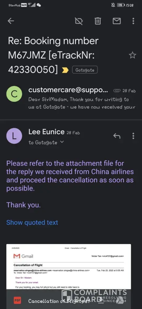 The airline decided to give a refund, but Gotogate is dragging time.