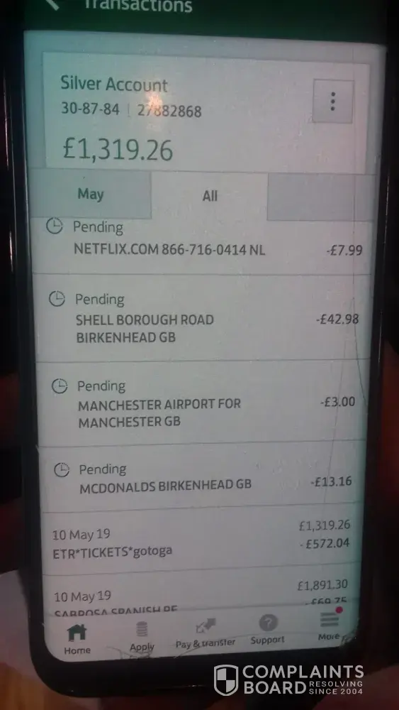 The amount of £577 was pending out of my account after speaking to 2 call operators they assured me it wouldn't be taken and refunded within 24 hrs.