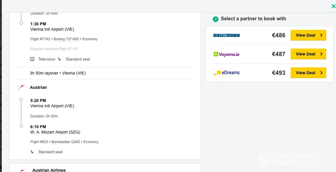 I went from the tripadvisor website to book a flight back to salzburg at 6:10pm