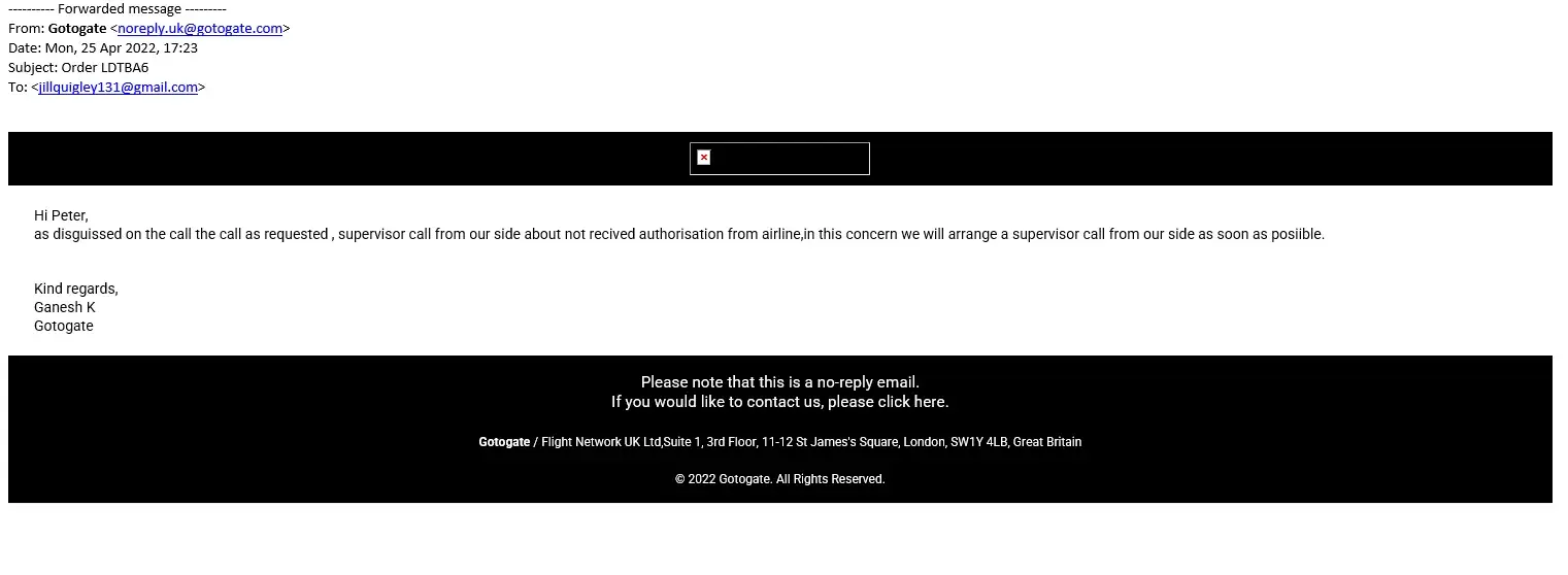 We received this email regarding the flight.
