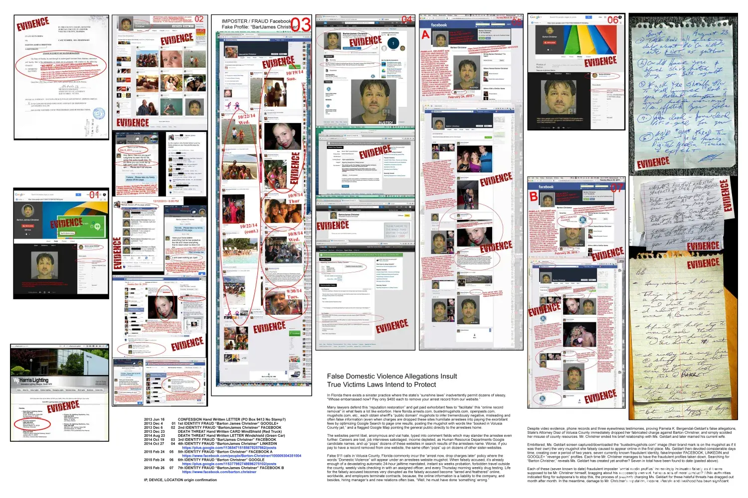 Evidence attached to support this scam report. The attached documents are PUBLIC RECORD, available in legal databases, online through background checks, by request from clerk's of court, and are completely in the hands of multiple agencies, Putnam County, Volusia County and various media sources such as the Wall Street Journal, The Orlando Sentinel, and...