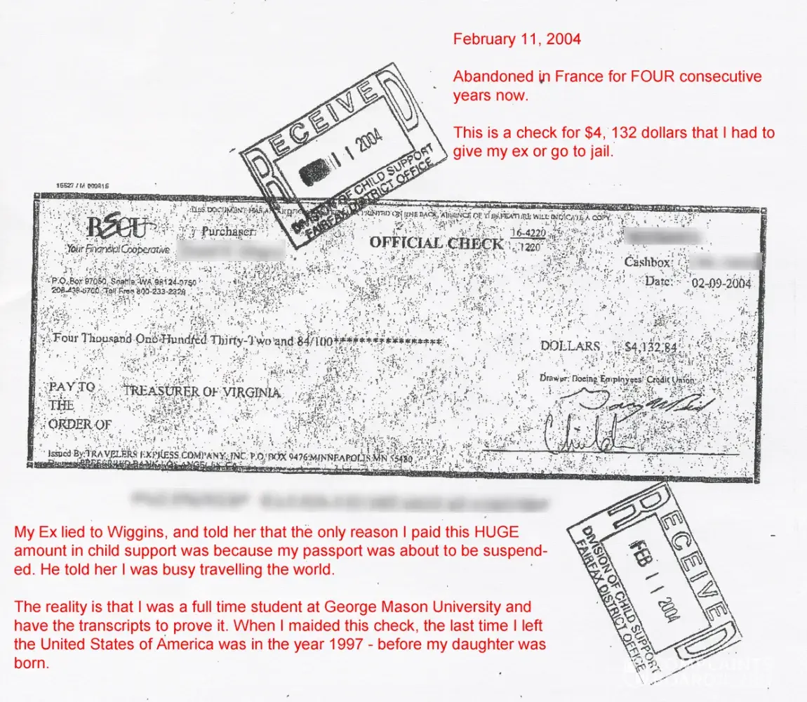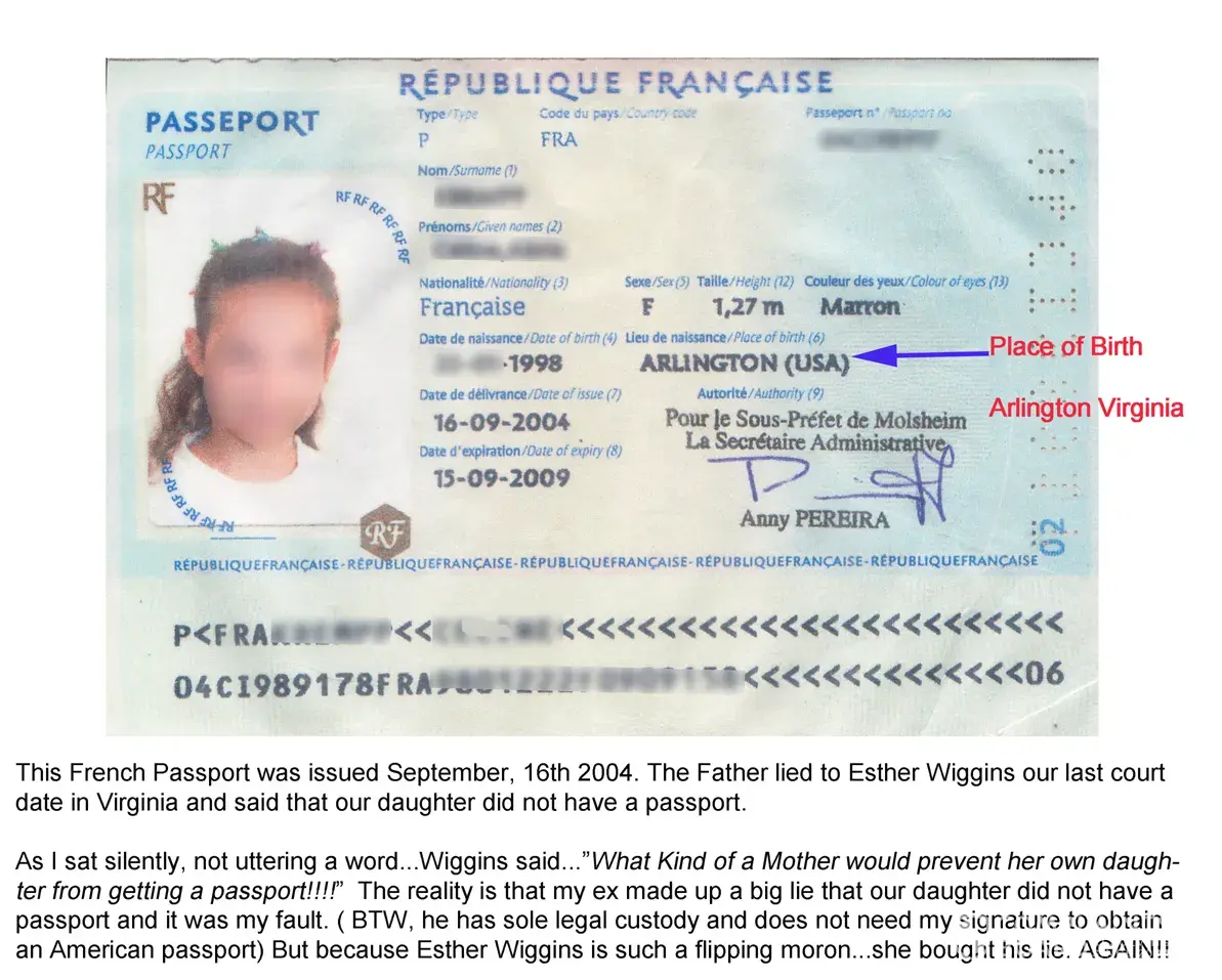 The last time I saw my daughter she was 7 years old. She was unable to speak English because her biological father abandoned her in France with his relatives for nearly six years. He maintained an elaborate compounding lie in the court room of Judge Esther Wiggins Lyles, pretending our daughter resided with him in Washington DC. Esther Wiggins allowed a man...