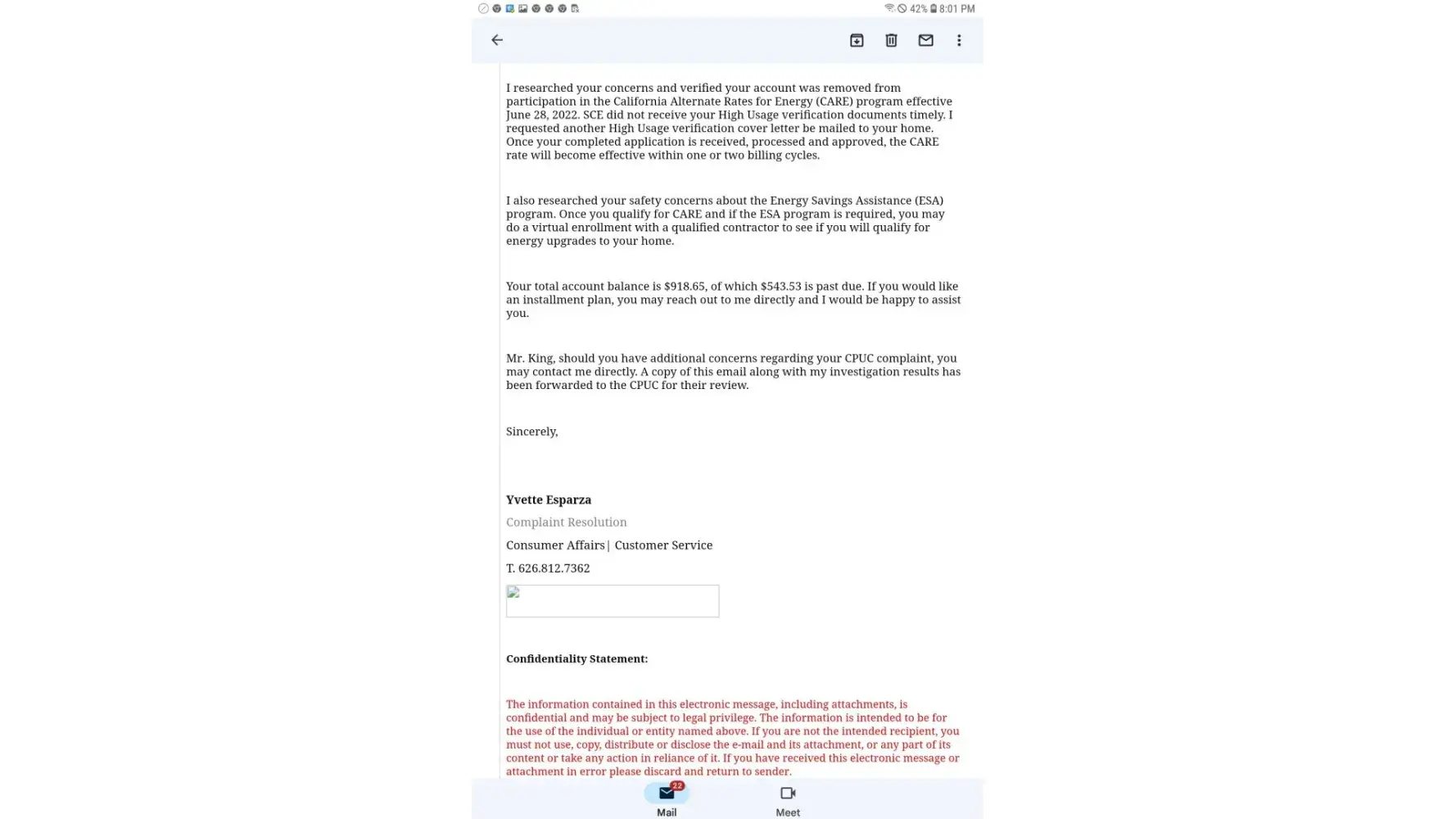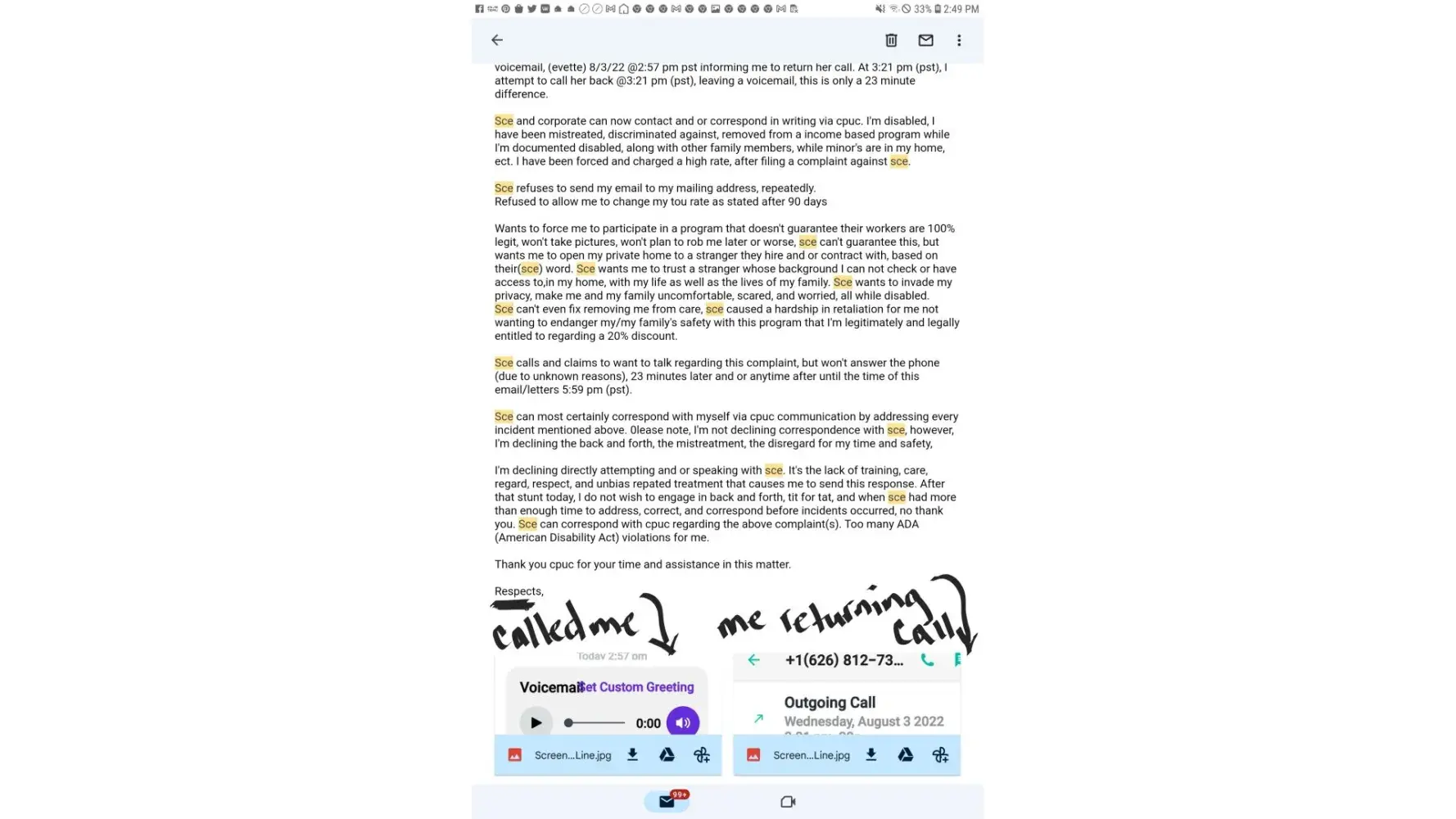 Filed a complaint against SCE last year, instead of referring me to a disability advocate (as advertised via email/website), cpuc decides to violate my disability rights, along with sce, failing to properly investigate, and simply took forever to respond, while referring me back to SCE, despite all of my personal/family information being sent to them...
