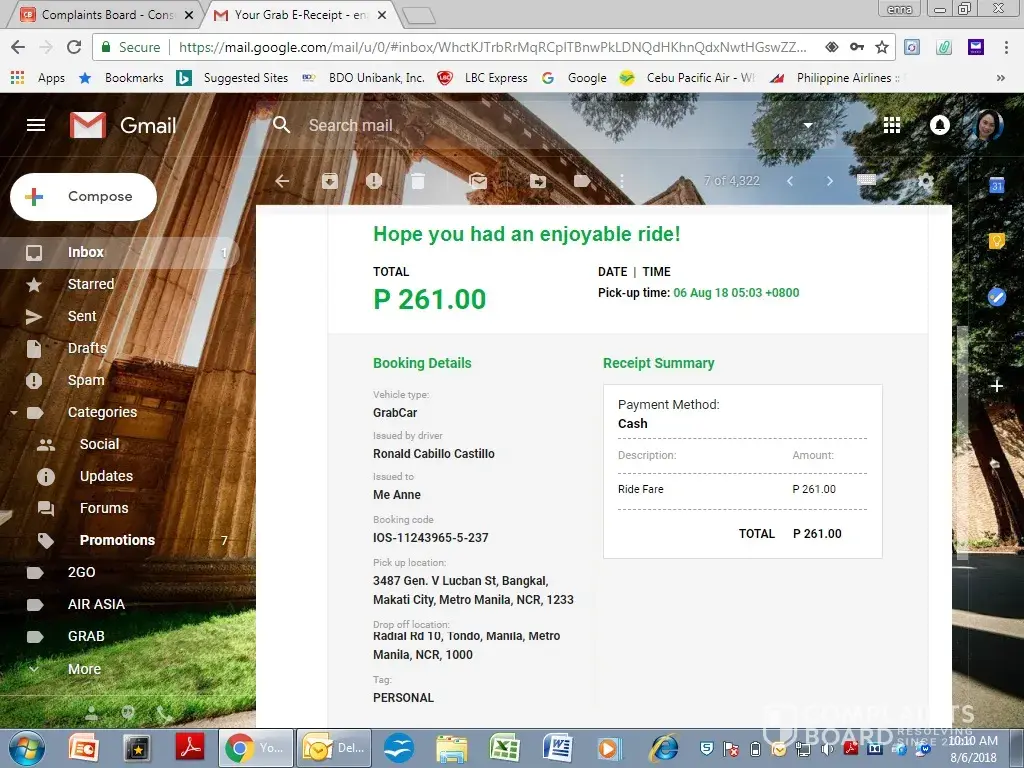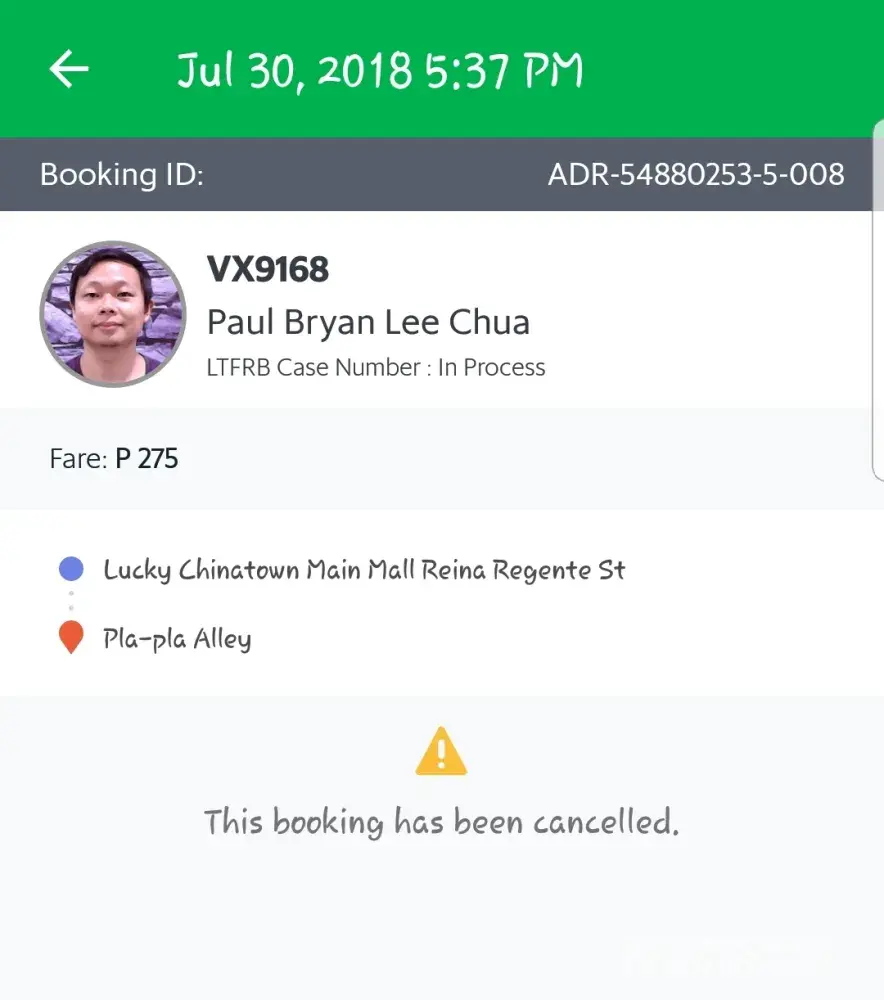Ds hppened ystrday Aug.7. Driver named Ronald Sacopon Salgado asked me when I was already sitting inside his taxi, how much do I need to pay? I said I dont know d exact amoun.Based on my Grab E-Receipt, my ride fare was P 89.00 PLUS ds additional BOOKING FEE? Dat costs P 75.00, a total of P 164.00.But d driver charged me P 220.00.And dat's too much.