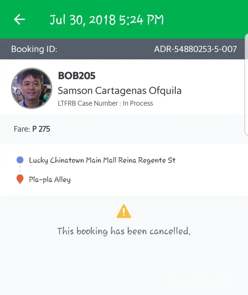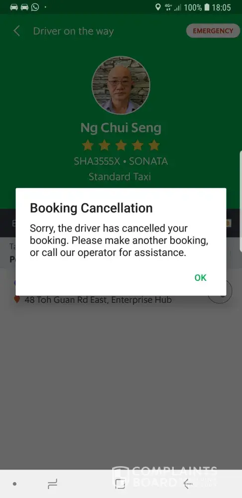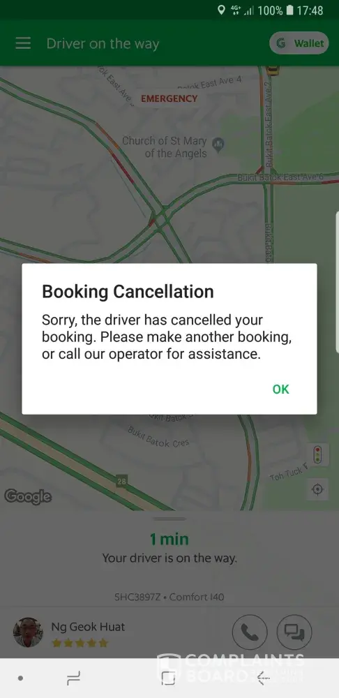 driver's cancellation of booking