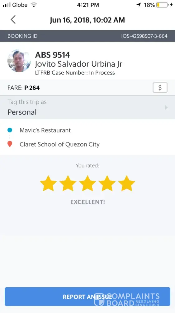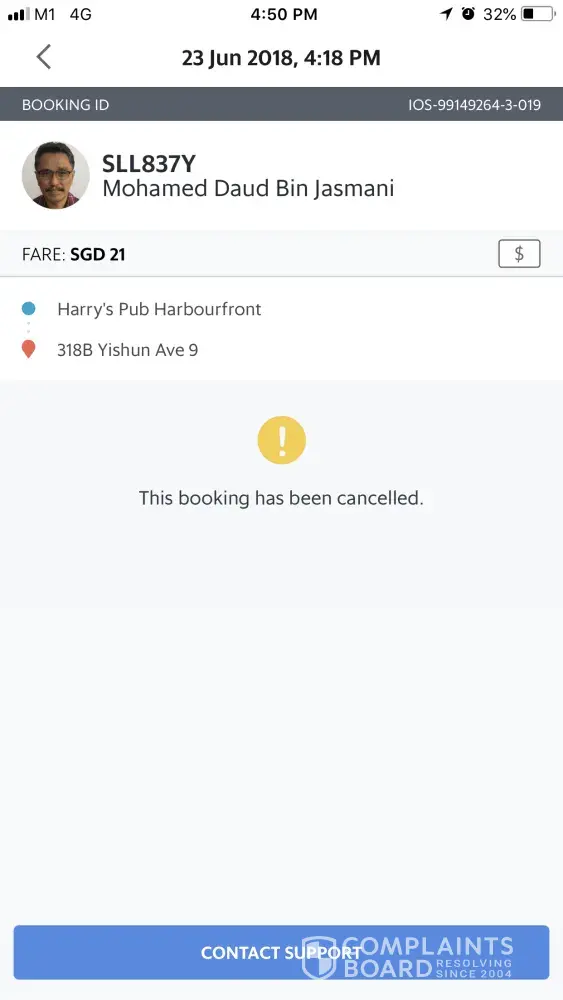I am complaining about the grab driver
