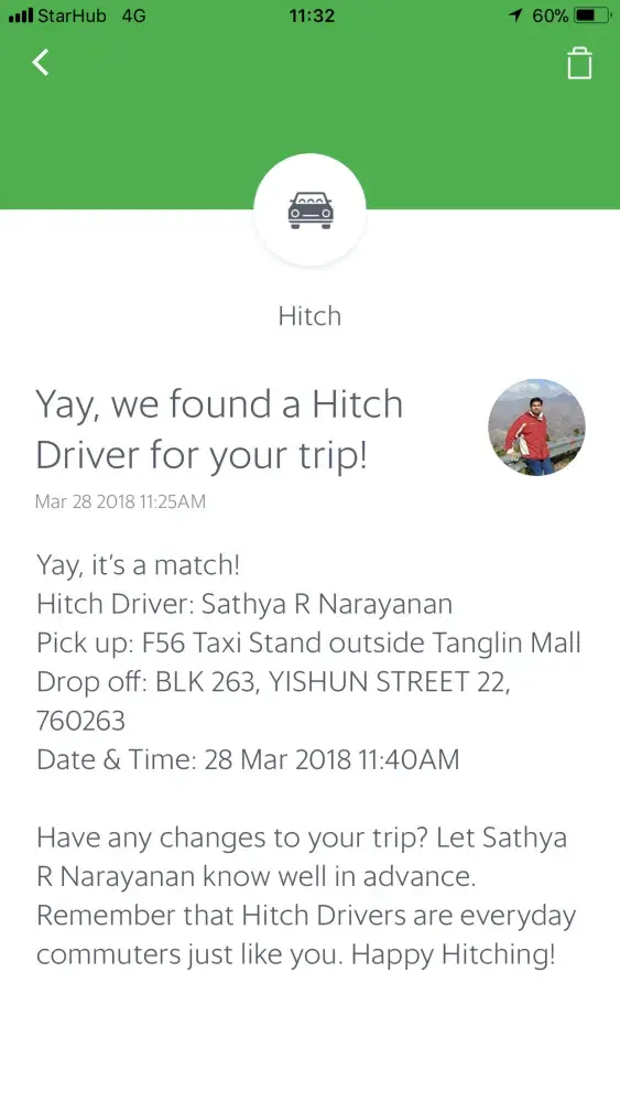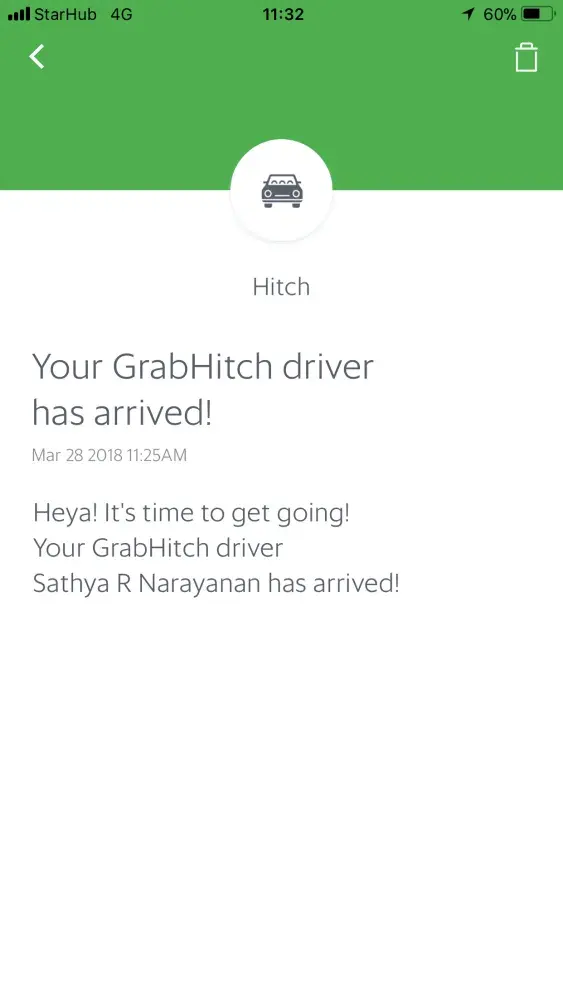 11.25am I've receive a msg Grab found me a driver