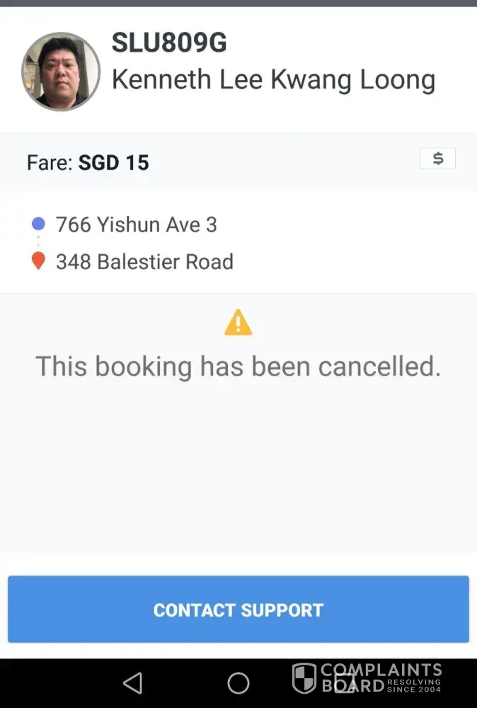 I want to complain this car plate slk3959p name goh yong poo. for cancelled my booking id ios-[protected]-3-1104
