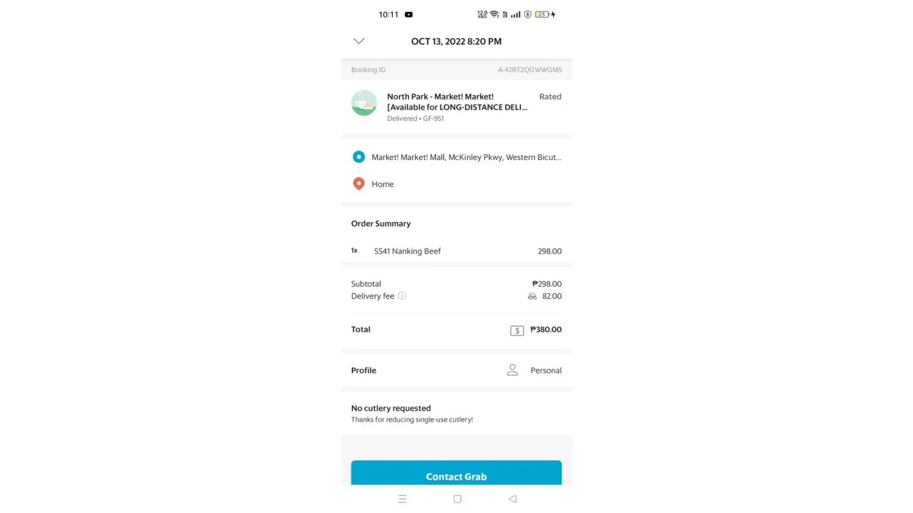 I ordered Nanking Beef at North Park Market Market Via Grab, unfortunately I asked my father to received it for me since I'm working on my laptop. To my surprise I only received the soup, so I immediately raised a ticket around 9:04 pm. Up to this time 10:14 I haven't received any reply from the raised ticket. IT WAS A FOOD and they have to be responsive! How can i eat a noodle without a noodle on it? NO Customer Service Hotline for both GRAB and North Park. Too disappointing.