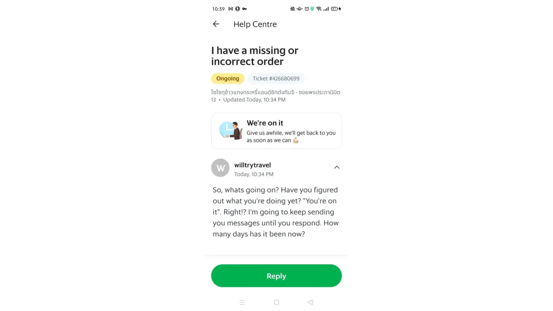 Lately, I have had numerous issues with Grab Food delivery and Grab Customer Service in Bang Lamung, Chonburi, Thailand.