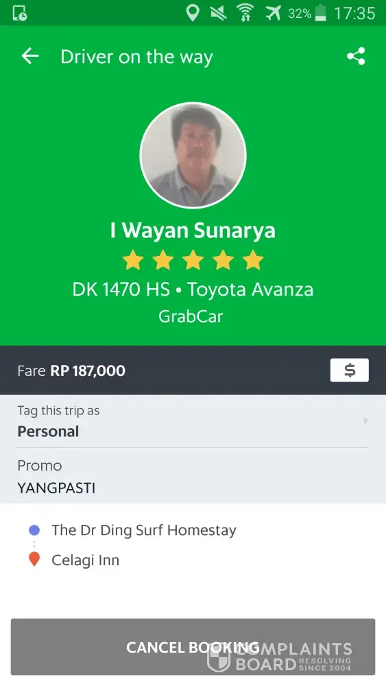 I am writing to your office to file a complaint with the GrabShare booking I am into at this moment.